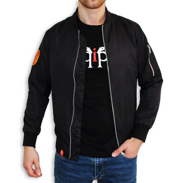 SHQIPEZ MA1 Black Military Bomber Jacket is made of a diamond quilt inside-lining in the color red. On the top right shoulder is the famous UÇK (Ushtria Çlirimtare e Kosoves) emblem/patch and on the bottom right near the zipper a beautiful double-headed Albanian eagle.